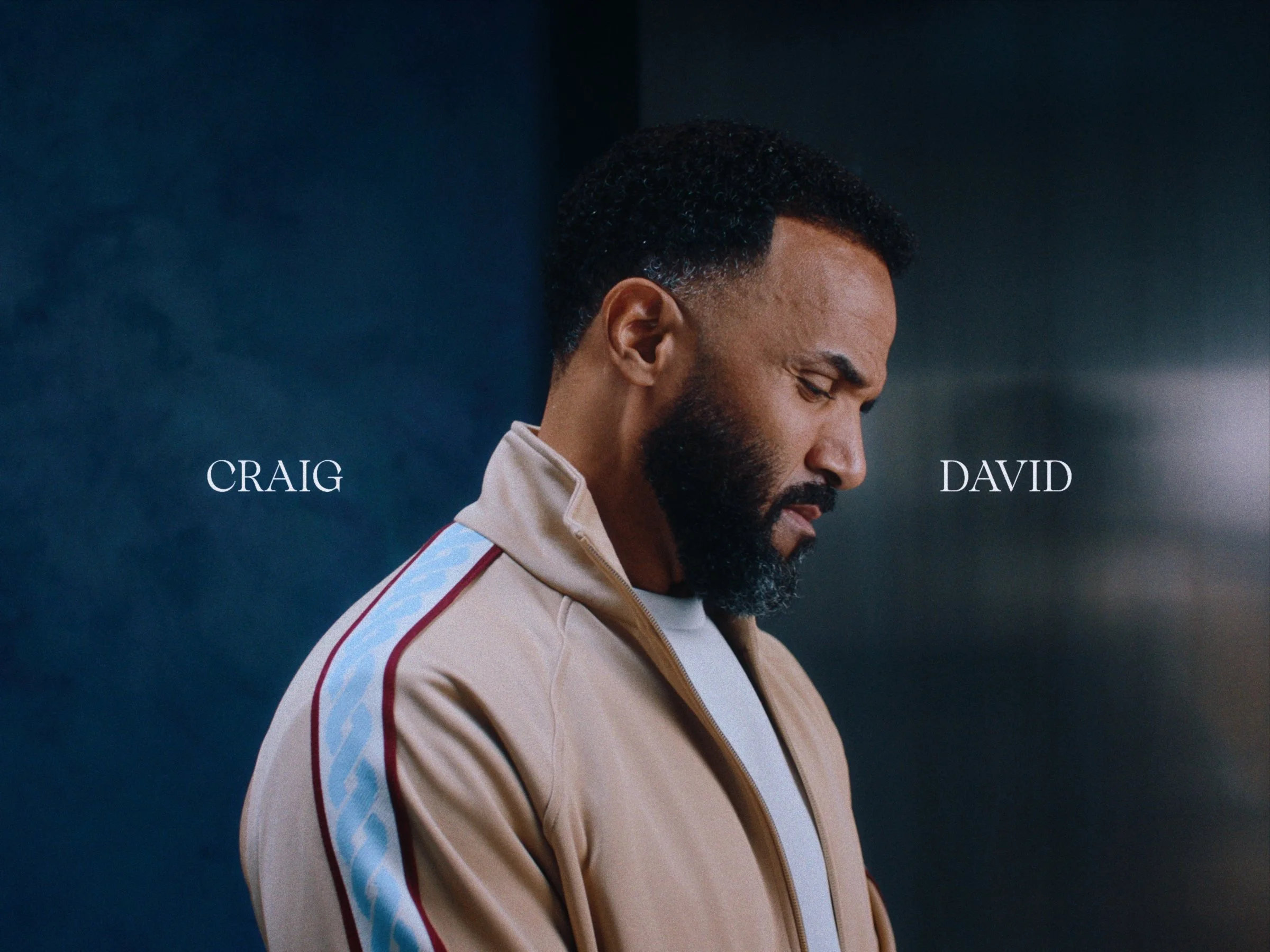 Side profile of a man with short, curly hair and a beard, wearing a maroon jacket, against a dark blue background.